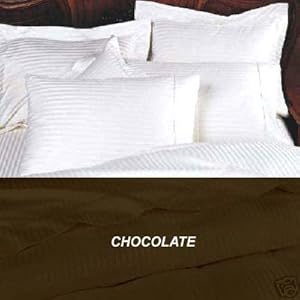 .You can choose to buy a product and CAL KING COMBO in color CHOCOLATE, tone on tone stripe. Experience the rich soft feel of this exceptional sheet set. Woven in the worlds finest 600TC Egyptian Cotton for the ultimate in lavish comfort and durability. A truly amazing set. Set includes one fitted bottom sheet for a 74x84 mattress that is up to 18" thick. The oversized top sheet measures 108x102. Two pillow cases 20x40. Also included is KING Duvet Cover Set. Color is CHOCOLATE tone on tone stripe. Duvet Cover measures 102x90 and has a reverse button closure for easy on and off of your favorite comforter. Also, two KING shams with a 2" flanged outside edge. Enjoy the luxury of this wonderful bedding combo.